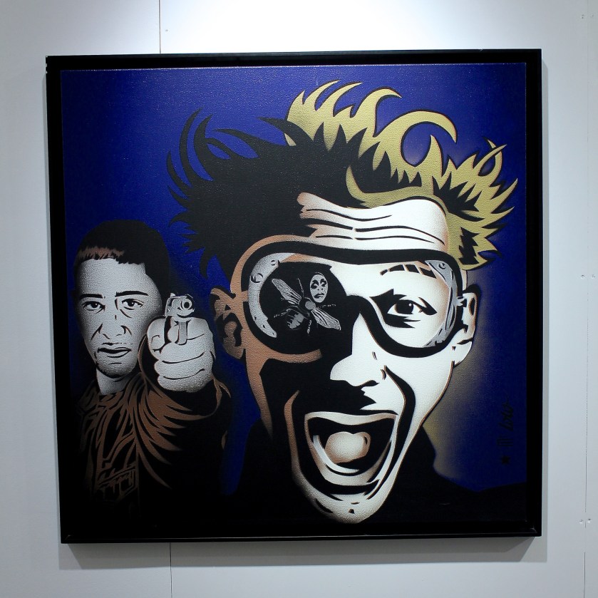 En 50 oeuvres on fait le tour de tout ce que recouvre les appellations « streetart » ou « art urbain » depuis un demi siècle. Ainsi on peut voir des oeuvres de pionniers tels que Jacques Villeglé, Gérard Zlotykamien ou encore Ernest Pignon Ernest et Miss. Tic. Puis, au fil de la déambulation, on parcourt les années pour arriver à aujourd’hui avec la projection de vidéos qui présentent les créations de plusieurs artistes au M.U.R. Oberkampf.
