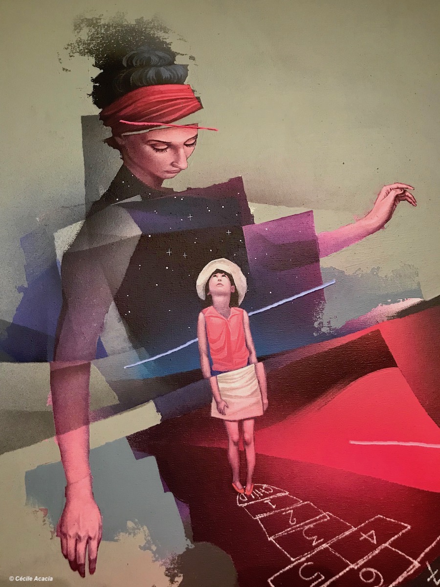 « LA MARELLE » 1 2 3 4 …Tout en gardant l ‘équilibre, c’est à cloche-pied que je suis devenue adulte. Enfin, et au fur et à mesure du temps qui passe, les marques de craies s’estompent. Je ris de mon impatience à vouloir devenir grande. Grande et libre !!!Comme une longue conversation, son souvenir me revient et je la vois, aussi petite que fragile, me regarder de tout en bas.