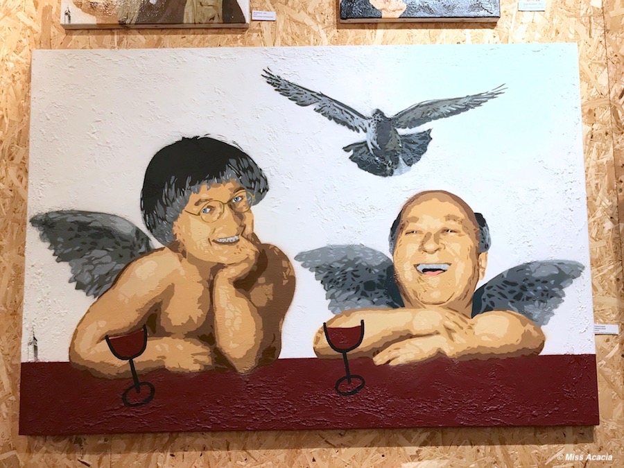 25 septembre 2018 Big Ben street Art Les anges Wolinski et Cabu prennent un verre.Hommage à Charlie Hebdo
