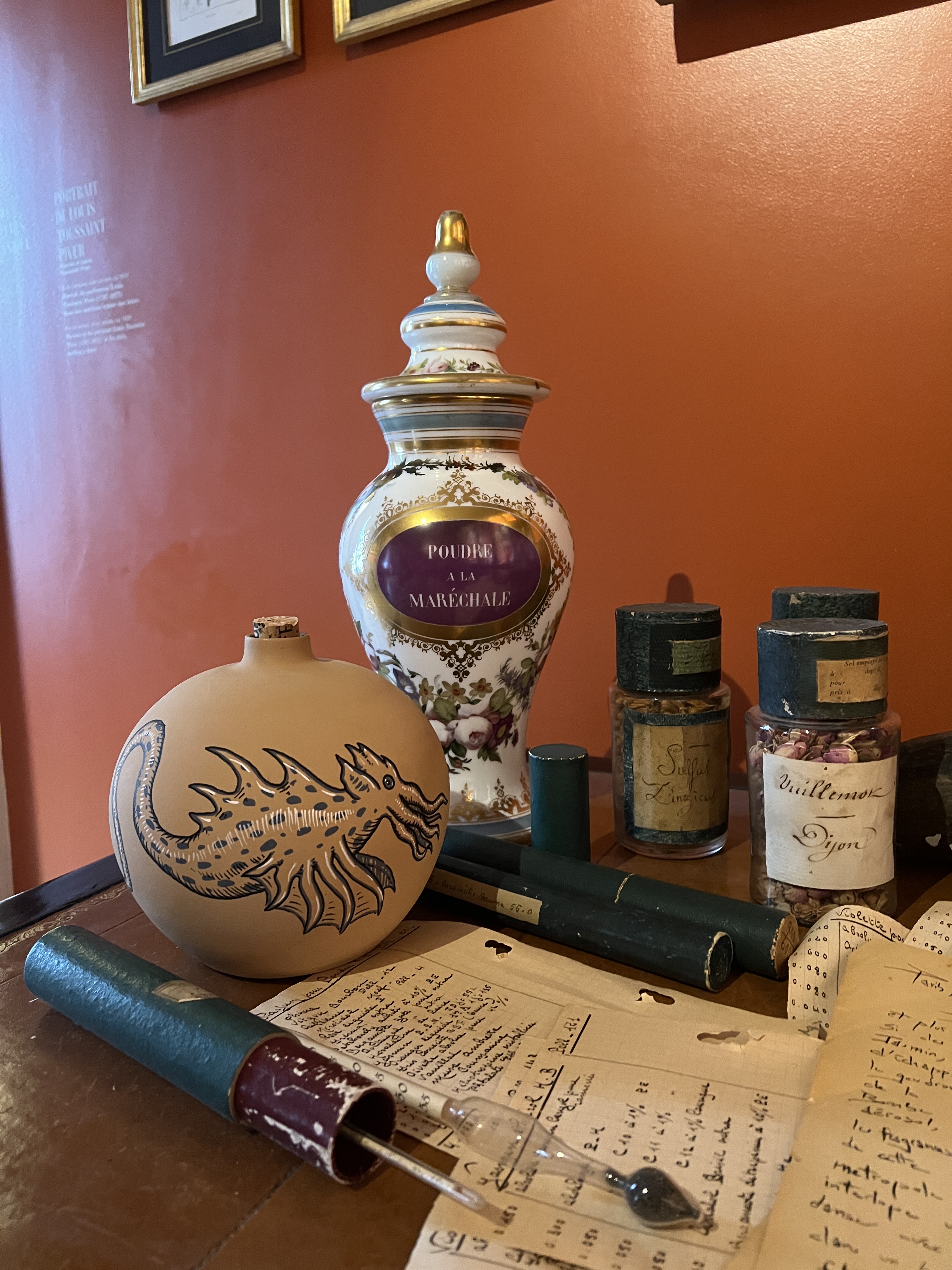 Dès l’entrée du Musée du Parfum Fragonard, les visiteurs sont accueillis par une galerie de portraits anciens, un rappel de l’histoire centenaire de la parfumerie. Le musée, situé dans un écrin somptueux du XIXe siècle, offre une plongée dans le monde du parfum, de ses ingrédients à ses flacons en passant par ses techniques traditionnelles. C’est ici que Codex Urbanus a choisi de poser ses Posca, créant une symbiose inattendue entre le street art contemporain et le patrimoine parfumé de Fragonard.